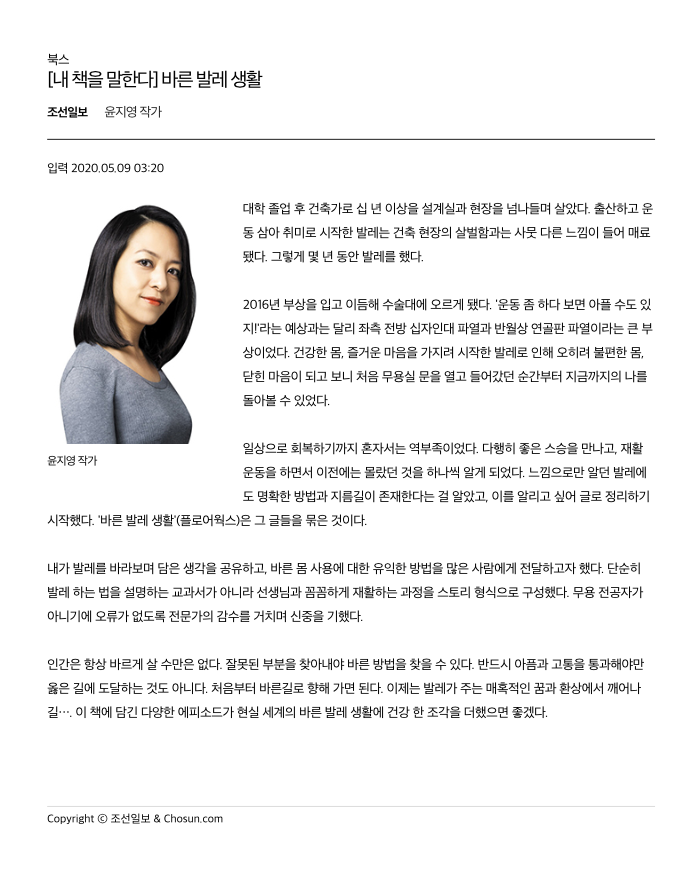 2020년 5월 9일 자 | 조선일보 | [내 책을 말한다] 바른 발레 생활
