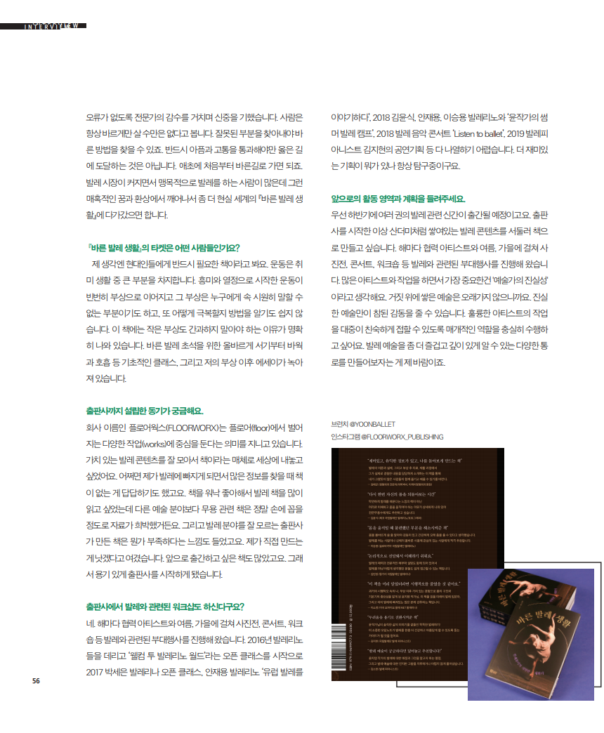 40세에 발레 입문한 건축가의 치열한 재활기 발간 『바른 발레 생활』 | [춤과 사람들] 인터뷰 2020년 7월호 여전히 건축 잡지가 아닌 무용 잡지에 기사나 인터뷰가 실릴 때마다 깜짝깜짝 놀라지만
