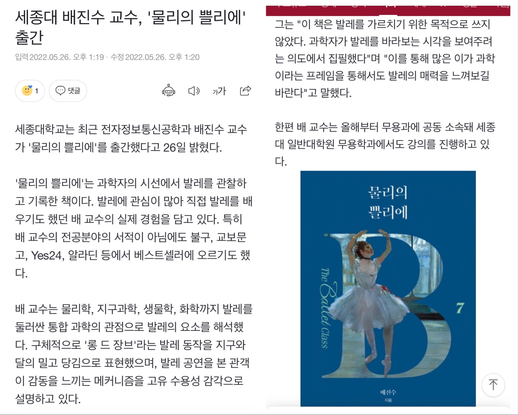| 조선일보 신간 | 진화하는 발레 클래스 | 2022.05.14. (0) | 2022.06.13 |