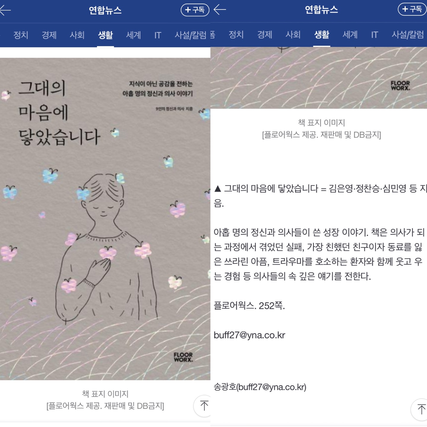 연합뉴스 | 2023년 1월 12일 자 | 신간 《그대의 마음에 닿았습니다》