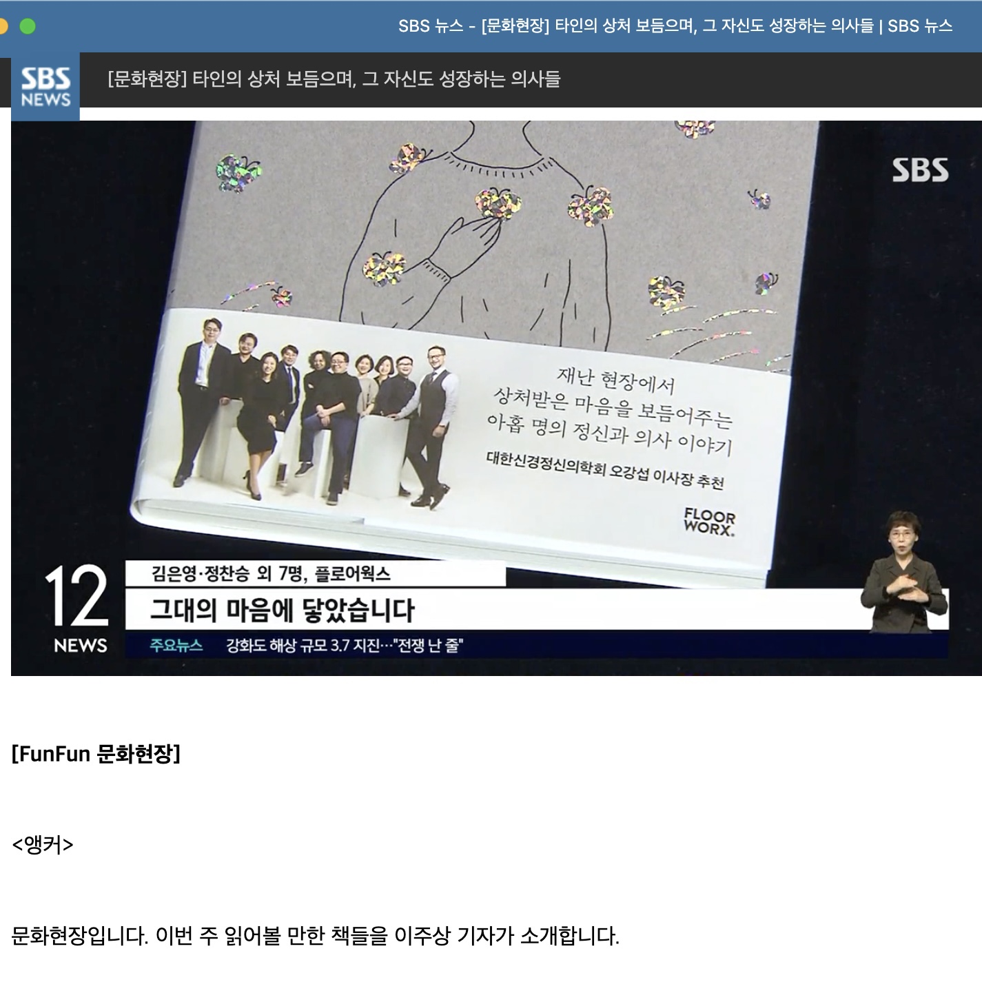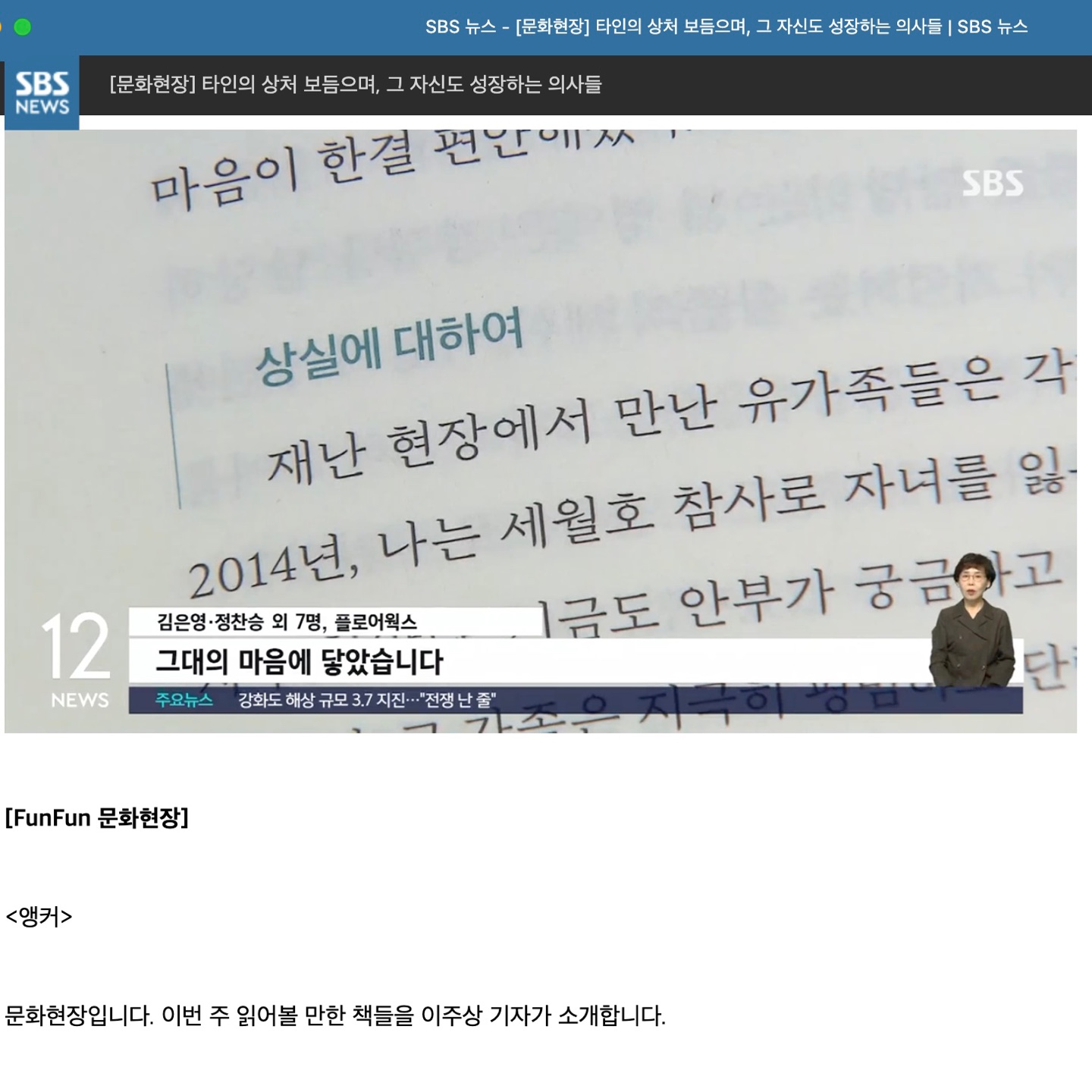 세월호 희생자 가족들과 군부대 장병들, 그리고 탈북인 등과 함께했던 정신과 의사들이 자신의 마음을 털어놓습니다.