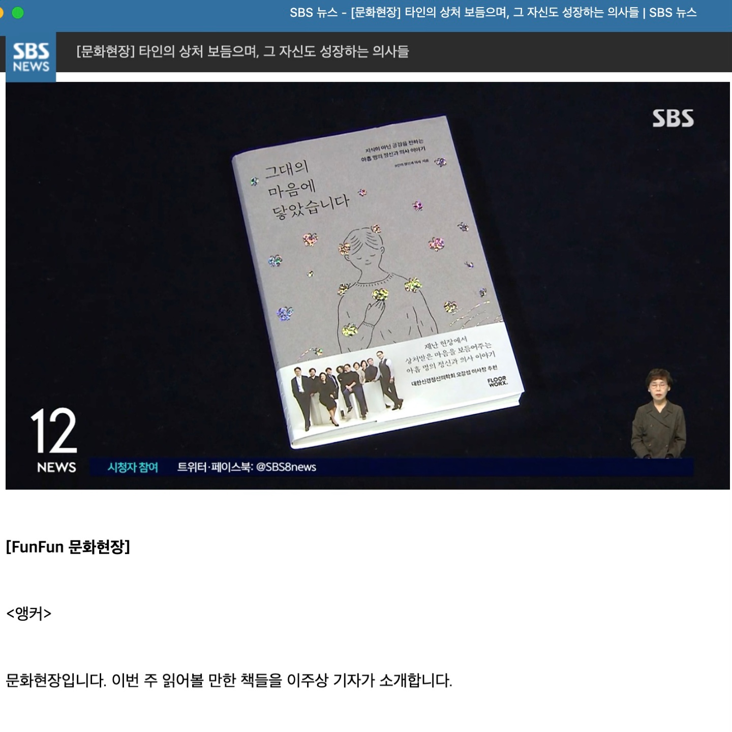 [FunFun 문화현장] 문화현장입니다. 이번 주 읽어볼 만한 책들을 이주상 기자가 소개합니다. [그대의 마음에 닿았습니다 / 김은영, 정찬승 외 7명 / 플로어웍스] <그대의 마음에 닿았습니다>는 다른